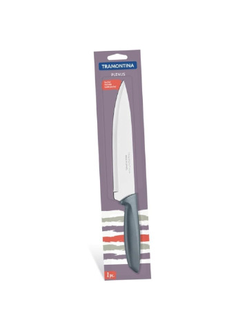 заснований у Бразилії у 1911 році 10 фабрик, які виробляють понад 18 000 найменувань Один з лідерів світового ринку з виробництва ножів, їдалень та кухонного приладдя, посуду для приготування їжі, інструментів для сільського господарства, будівництва та саду Tramontina виробляє кухонне начиння тільки з найкращої 18/10 нержавіючої сталі, відполірованої до дзеркального блиску, яка з часом не тьмяніє і не темніє Кожен елемент розробляється з умовою, щоб він зміг задовольнити смак як звичайного домовласника, так і найбільш вимогливого професійного кухаря Ніж серії Plenus Ножі серії Plenus – поєднання комфорту та практичності Легкі та міцні, довговічні з чудовою здатністю нарізування, Лезо з нержавіючої сталі AISI 420 Поліпропіленова ручка не ковзає в руках