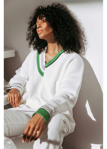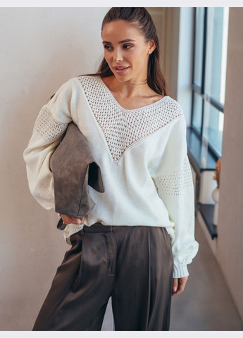 Модель має класичний крій із круглим вирізом, що забезпечує зручну посадку та свободу рухів. Еластичні манжети на рукавах і по нижньому краю надійно фіксують джемпер, запобігаючи його підніманню під час активних рухів. Джемпер легко одягається та підходить для носіння як самостійно, так і в комплекті з сорочкою, блузою або футболкою.