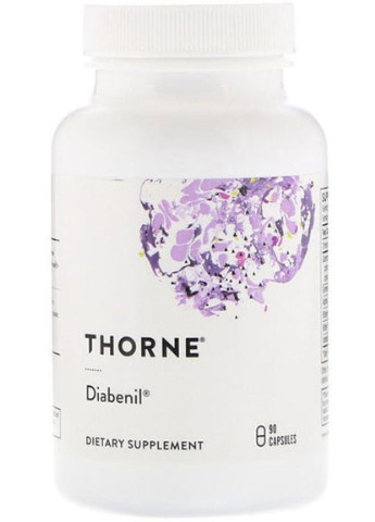 Diabenil, Thorne Research - унікальне поєднання рослин і поживних елементів, розроблене для підтримки вже нормального рівня цукру в крові. Крім того, він містить важливі антиоксиданти і флавоноїди для захисту чутливих тканин організму. Функціональна дія: Для того щоб запобігти розвитку цукрового діабету другого типу, а також супутні йому ускладнення, необхідно проводити профілактику ожиріння. Для цього потрібно ретельно планувати свій раціон, уникати продуктів, що сприяють підвищенню цукру в крові, вести активний спосіб життя, уникати стресів, які також призводять до підвищеного вмісту глюкози в крові, в зв'язку з чим знижується чутливість інсуліну і виникають збої в харчуванні, а також забезпечити свій організм життєво важливими вітамінами і мікроелементами. У тибетській і китайській народній медицині момордика харантія широко використовують для лікування серцево-судинних хвороб, при виразці шлунка, для зниження рівня цукру в крові, вироблення інсуліну і лікуванні діабету, а так само для продовження активного довголіття і запобігання від передчасного старіння. Джімнема Сильвестра покращує рівень цукру в крові. Сильвестра запобігає або знижує до мінімуму ознаки цукрового діабету будь-якого ступеня. Регулярний прийом хрому робить істотний вплив на широкий перелік порушень здоров'я, пов'язаних з резистентністю до інсуліну: діабет, ожиріння, гіпоглікемія, інсульт, гіпертонія. Альфа-ліпоєва кислота бере участь в процесі перетворення цукру (вуглеводів) в енергію, сприяє зниженню рівня цукру в крові. Застосування: Приймати по 2 капсули три рази на день. Протипоказання: Індивідуальна непереносимість компонентів. Попередження: При вагітності, годуванні груддю, прийомі будь-яких медичних препаратів або наявності будь-яких захворювань слід проконсультуватися з лікарем перед вживанням будь-яких харчових добавок. У разі виникнення будь-яких побічних реакцій припиніть використання і проконсультуйтеся з лікарем. Зберігати в недоступному для дітей місці. Не застосовувати препарат, якщо зовнішня захисна мембрана відсутня або пошкоджена.