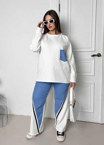 Розмір 48-50: кофта обхват грудей - 110 см, довжина рукава від горловини - 72/46 см, довжина кофти - 70 см. Штани: обхват стегна 112 см, талія гумка 40-56 см, довжина штанів 114/87 см