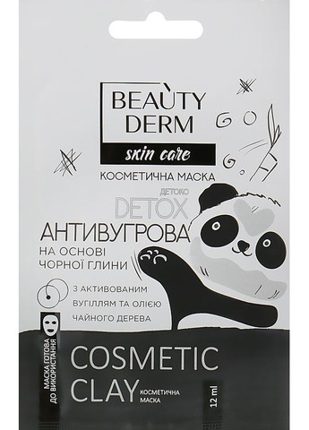 Застосування косметичної маски «Противугрова» — один з ефективних способів поліпшити стан шкіри, схильної до вугрового висипу, акне, запалень. Б'юті-продукт на основі чорної глини багатий мінералами і мікроелементами. Склад доповнений ефірною олією чайного дерева й активованим вугіллям. Маска забезпечує глибоке очищення, в результаті якого проявляється оздоровлювальний ефект. Особливості Beauty Derm Skin Care Cosmetic Clay: - основа — чорна глина, багата мінералами і мікроелементами;- видаляє вміст пор;- виводить токсини;- активоване вугілля — абсорбує надлишок себуму й інші забруднення;- регулює роботу сальних залоз;- знижує синтез шкірного жиру;- перешкоджає появі комедонів, вугрового висипу, прищів і акне;- олія чайного дерева — природний антисептик, забезпечує антибактеріальну дію;- підвищує еластичність і пружність;- відновлює мінерально-сольовий баланс шкіри;- нормалізує рН-баланс;- надає шкірі здорового і доглянутого вигляду.