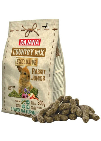 Повнораціонний ексклюзивний корм для молодих кроликів у віці до 8 місяців Сучасна обробка інгредієнтів за допомогою холодної екструзії зберігає поживні цінності, смак і запах. Корма COUNTRY MIX EXCLUSIVE мають збалансований склад, який продуманий до найменших деталей, і який відповідає природним кормам, що зустрічаються в природі. Завдяки ретельному відібраних місцевих інгредієнтів, різних типів клітинок, вітамінів і натуральних антиоксидантів можна підтримувати імунітет тварин Состав COUNTRY MIX RABIT JUNIOR EXCLUSIVE адаптовано для молодого організму тварини. Додатковий вміст білків та жирів разом з добавкою пивних дріжджів забезпечує відповідний розвиток і ріст. Інулін (розчинене волокно), попавши всередину, дає пробіотичні ефекти, які сприяють ліпшій функції травної системи. Форма, твердість і текстура — усе це допомагає правильно змальовувати зуби. Запах і смак нашого корму всилені виключно натуральними складниками — яблучною м’якушкою, морквою, пивними дріжджами. Завдяки збагаченню жирними кислотами Омега-3, які виявлено, наприклад, у насіннях льону, при регулярному годування, хутро стане блискучим і пухнастим. COUNTRY MIX RABIT JUNIOR EXCLUSIVE також містить екстракт юки, який є добре відомим джерелом кальцію, фосфору, калію, заліза та вітаміну A і B. Цей складник сприяє ефективному поглинанню поживних речовин травної системи і зменшує здуття живота і запах фекалії. Склад: Альфа-альфа, лугове сіно, пшениця, овес, яблучна целюлоза, паростки пшениці, насіння льону, меласа, паростки солоду, моркви, пивні дріжджі, ехінацея, інулін, юка, бета-каротин, екстракт розмарину. Аналітичні складові: протеїн: 16%, клітковину: 20%, олії та жири: 3,5%, мінерали: 4,3%. кальцій 0,8%, фосфор 0,4%. Добавки (1 кг): Вітамін А: 9000 МЕ, вітамін D3: 1700 МЕ, вітамін С: 90 мг, вітамін Е: 80 мг.