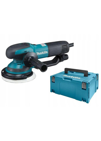 Makita BO6050J - ексцентрикова вібраційна шліфмашина подвійної дії з підошвою діаметром 150 мм, яка працює від побутової електромережі з напругою 220-240 В, має двигун потужністю 750 Вт, який забезпечує від 1600 до 6800 об/хв з амплітудою 5.5 мм. Вбудована система видалення пилу до якої можна підєднати мішок для пилу або вакуумний пилосос забезпечує чистоту на робочому місці (обовязкове використання перфорованих абразивних кругів). Ергономічна рукоятка з нековзким покриттям із еластомеру надійно лежить у руці, забезпечуючи максимальний комфорт і керованість. Додаткова рукоятка додає комфорту при роботі, а система регулювання обертів дозволяє працювати з делікатними поверхнями.