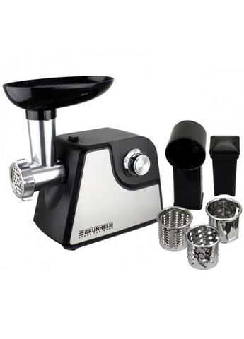 М'ясорубка Grunhelm AMG180SS - недорога модель із широкими функціональними можливостями. Побутова техніка від відомого виробника знайдеться місце на кухні. Пристрій може за короткий час обробити велику кількість м'яса. Поміщати шматочки продукту в горловину - єдине ваше завдання. При цьому попередньо варто видалити з продукту великі та жорсткі кістки, а ось з жилами та хрящами мотор упорається без проблем. Знаходьте цікаві рецепти, вигадуйте власні, радьтеся з близькими людьми – радуйте лише смачними м'ясними делікатесами. Дизайн та матеріали Grunhelm AMG180SS Вибираючи кухонну техніку, варто керуватися не лише її технічними характеристиками, а й дизайном. Розумна ціна м'ясорубки Grunhelm AMG180SS не завадила компанії приділити увагу зовнішньому вигляду. Представлена модель – компактна та стильна. Вона легко розміститься навіть на маленькій кухні, а завдяки грамотно продуманим габаритним розмірам. Чорний колір із сріблястими елементами доповнить будь-який інтер'єр. Прогумовані ніжки, що не ковзають, є гарантією стійкості машини на робочій поверхні. Матеріал корпусу - вдала комбінація металу та пластику. Це унеможливлює механічні пошкодження, а також є запорукою тривалої служби пристрою. Крім того, всі деталі виконані з якісних матеріалів, які негативно не впливають на їжу. А це означає, що безпека використання м'ясорубки Grunhelm AMG180SS знаходиться на найвищому рівні. Особливості побутової техніки М'ясорубка Grunhelm AMG180SS - багатофункціональний кухонний помічник, який значно прискорить процес обробки м'яса та овочів. З таким агрегатом можна економити час на кулінарних справах, щоб приділити вільні хвилини сім'ї. Скільки апетитних блюд можна приготувати з м'яса? Багато! Тефтелі, зрази, м'ясні запіканки, кеббе, бургери, салати - власникам техніки під силу будь-який вишук. Електроприлад оснащений двигуном на 1500 Вт, який швидко подрібнює м'ясні шматочки. Продуктивність м'ясорубки Grunhelm AMG180SS складає 1,7 кг м'яса на хвилину. «Реверс» дає можливість уникнути повного розбору девайсу — зворотний хід миттєво позбавить шнек від м'ясних прожилок, що застрягли. Завантажувальна вирва широка, тому завантажувати їжу зручно. Кнопка увімкнення/вимкнення розташовується на бічній панелі електром'ясорубки, що робить її ергономічною. Рекомендуємо більш детально вивчити наведені нижче технічні характеристики: максимальна потужність - 1500 Вт; продуктивність - 1,7 кг/хв; матеріал корпусу - метал/пластик; матеріал лотка - пластик; кількість грат - 2; кількість барабанів - 3; габарити (ВхШхГ) - 270х210х210 мм; вага - 2,1 кг; гарантія – офіційна. Функції та насадки м'ясорубки Grunhelm AMG180SS Відмінний результат функціонування нового агрегату забезпечують базові насадки, які пропонує виробник в комплекті. Модель Grunhelm AMG180SS забезпечена: Двома різальними дисками - прилади різного діаметру (5 і 7 мм) гарантують отримання фаршу різного виду. Тертками і шатківником - агрегат з декількома знімними барабанами, які натирають овочі на тертці або шаткують. Приладом для ковбасок є конусна форма, у якої замість вершини відрізок трубки. При цьому м'ясорубку потрібно зупиняти та перев'язувати ковбаски. Це допомагає розділити безперервну сосиску на шматки. Ще одна перевага м'ясорубки Grunhelm AMG180SS - вбудований захист від навантаження. Технологія мінімізує можливість поломки приладу, щоб ви могли насолоджуватися роботою 