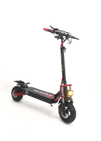 Електросамокат Tecros T5 Pro: 52 В 23,4 А·год, два мотори по 1100 Вт, до 63 км/год, запас ходу до 95 км Електросамокат Tecros T5 Pro — це повноприводна модель високої продуктивності з двома моторами та акумуляторним блоком збільшеної ємності. Самокат розрахований на дорослих користувачів, яким потрібна висока швидкість, великий запас ходу та здатність долати підйоми до 25–30 % без суттєвого падіння динаміки. Подвійний привід та реальна динаміка Tecros T5 Pro оснащений двома безщітковими моторами номінальною потужністю по 1100 Вт кожен. Сумарна пікова потужність сягає 2912 Вт, що забезпечує розгін до 25 км/год менш ніж за 4 секунди та до 50 км/год за 9–10 секунд (при вазі райдера 75–80 кг). На підйомах з нахилом 20 % самокат зберігає швидкість 30–35 км/год, а на 30 % підйомі — близько 18–22 км/год. Повний привід автоматично розподіляє момент між колесами, усуваючи пробуксовку на мокрому асфальті, гравії та вологому ґрунті. Акумулятор та запас ходу Tecros T5 Pro укомплектований літій-іонним акумулятором 52 В 23,4 А·год (загальна ємність 1216 Вт·год). При русі в економному режимі (25 км/год, рівна дорога, вага райдера 70 кг) реальний запас ходу становить 80–95 км. У змішаному міському циклі із середньою швидкістю 35–40 км/год та частими розгонами пробіг знижується до 50–60 км, а при постійній їзді на максимальній швидкості та вазі райдера 100+ кг — до 40–45 км. Повна зарядка одним штатним пристроєм 58,8 В 2 А займає 11–12 годин; при використанні двох зарядних пристроїв одночасно час скорочується до 6–6,5 годин. Підвіска та колеса Самокат обладнаний передньою та задньою пружинно-олійною підвіскою з ходом близько 60–70 мм, що ефективно гасить вібрації на бруківці, плитці та ґрунтових дорогах. 10-дюймові безкамерні шини (254 мм) з позашляховим протектором забезпечують гарне зчеплення та знижують ризик проколів. Ширина покришок 3 дюйми (76 мм) підвищує стійкість під час проходження поворотів на швидкості до 50 км/год. Гальмівна система та безпека Передні та задні гідравлічні дискові гальма (диски 140–160 мм) зупиняють самокат з 40 км/год до повної зупинки за 3,5–4 метри на сухому асфальті. Яскрава LED-фара (близько 20 Вт), задній стоп-сигнал, поворотники та бічна підсвітка деки гарантують видимість на відстані понад 200 метрів у темний час доби. Керування та ергономіка Tecros T5 Pro оснащений кольоровим 4,5-дюймовим дисплеєм з NFC-ключем для швидкого увімкнення без ключа та захисту від викрадення. Кермо шириною 690 мм та висотою 1370 мм у розкладеному вигляді підходить для зросту від 165 до 195 см. Складний механізм зменшує висоту до 530 мм, а габарити у складеному вигляді (1300×690×530 мм) дозволяють перевозити самокат у багажнику середнього седана. Призначення та сфери застосування Модель призначена для: щоденних поїздок містом на відстані 20–50 км без підзарядки; заміських прогулянок парками, ґрунтовими дорогами та лісовими стежками; доставки в умовах щільного трафіку (кур’єри, сервісні бригади); активного відпочинку та екстремальної їзди завдяки високій потужності та прохідності; використання як альтернативи автомобілю на коротких та середніх дистанціях при вазі райдера до 130 кг. Повний перелік технічних характеристик Акумулятор: 52 В 23,4 А·год (1216 Вт·год), літій-іонний Мотори: 2 × 1100 Вт безщіткові (номінал), пікова сумарна потужність 2912 Вт Максимальна швидкість: до 63 км/год Запас ходу: до 95 км (економ-режим), 45–60 км (змішаний цикл) Час зарядки: 11