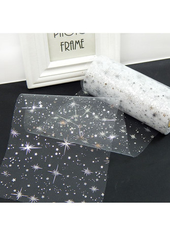 Фатин середньої жорсткості з блискучими зірочками, на метраж. Ширина - 15 см. Ціна вказана за 1 метр. Фатин середньої жорсткості з блискітками — це декоративний сітчастий матеріал, який поєднує легкість, об’ємність і ефектне мерехтіння. Завдяки середній жорсткості, блискучий фатин добре тримає форму, зберігаючи водночас м’якість і зручність у роботі. Матеріал представлений у вигляді широкої стрічки та прикрашений різними типами блискіток: дрібний або крупний глітер, глітер-хамелеон, блискучий горошок, паєтки, фігурні елементи з голографічним ефектом. Використання: Широка фатинова стрічка з блискучим оздобленням ідеально підходить для виготовлення об’ємних бантів, спідниць, декоративних шарів у сукнях, оформлення подарунків та святкового декору. Його застосовують у рукоділлі, скрапбукінгу, флористиці, створенні аксесуарів, прикрас для волосся, карнавальних костюмів. Фатин з блискучими елементами особливо актуальний для святкових та тематичних виробів ручної роботи.