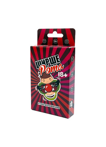 Вгадаєте, що робить майже кожну веселу настільну гру іще веселішою? Так, саме так — це доповнення, що має рейтинг 18+! Тепер вам доведеться не лише несамовито реготати, а й ніяково червоніти час від часу… Повірте, такого ви в своєму житті точно ще не промовляли! Настільна гра «Ширше рота» — кумедна й весела заміна вашим Еліасу, Актівіті й іншим вечірковим іграм. Діліться на команди, втавляйте в рота стоматологічний аксесуар для розширювання, демонструйте усім ваші білосніжні зубки й розповідайте про те, що побачили на картці! Спробуйте зробити так, щоб за одну хвилину ваша команда відгадала усе, що ви так старанно намагалися пояснити! Не хвилюйтеся, у вас чудова дикція! Так тримати! Увага! Цю версію точно не призначено для гри з дітьми, бо там… там… Ні, ми не говоритимемо це вголос, це вже доведеться робити саме вам! Тепер гра стане ще саркастичнішою й подарує вам цілу купу позитиву. Головне, щоб ваша щелепа змогла закритися самостійно після усього цього нестримного сміху!