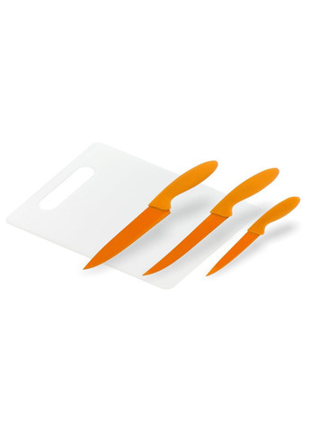 Набір кухонних ножів Calve 4 предмети (CL-3102) Оранжевий Склад набору: Ніж Сантоку — 15 см Ніж кухарський — 20 см Ніж універсальний — 13 см Дошка обробна Характеристики: Матеріал леза: нержавіюча сталь Матеріал руків'я: пластик Матеріал обробної дошки: пластик Ексклюзивний дизайн Можна мити в посудомийній машині Набір кухонних ножів Calve CL-3102, що містить три ножі та обробну дошку в яскравому жовтогарячому кольорі, — це ідеальне рішення для стильної та функціональної кухні! Кожне лезо з високоякісної нержавіючої сталі гарантує неперевершену гостроту та довговічність, даючи змогу вам легко нарізати будь-які продукти — від свіжих овочів до щільного м'яса. Ергономічні ручки забезпечують надійне та комфортне захоплення, що робить процес готування приємним і безпечним. Обробна дошка в комплекті створює ідеальну поверхню для нарізання, додаючи практичності та зручності у вашу кухонну рутину. Яскравий жовтогарячий колір не тільки привносить у ваш інтер'єр свіжість і енергію, а й надихає на нові кулінарні експерименти. Набір Calve CL-3102 — це не просто інструменти, а стильний акцент, який зробить кожне приготування захопливим і ефективним. Подаруйте собі радість і комфорт приготування їжі з цим функціональним і привабливим набором, який стане вашим надійним супутником на кухні!
