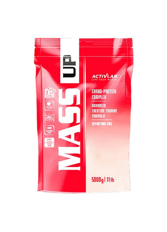 ActivLab Mass Up – це потужний гейнер, що сприяє стрімкому та якісному набору маси. Цей продукт підвищує анаболізм за рахунок значного вмісту у складі амінокислот. Вживання гейнера у повсякденному раціоні сприяє набору маси людям з інтенсивним метаболізмом і тим, кому складно набирати масу. У складі великий вміст вуглеводів (90%), вони впливають на оптимальне вироблення енергії та підвищують калорійність. Білок бере участь у будівельних процесах, а креатин прискорює відновлення організму та входить до складу енергетичних запасів. Призначення ActivLab Mass Up: набір ваги та м `язової маси підвищення силових показників за рахунок покращення витривалості організму активація анаболізму та гальмування катаболічних процесів вироблення енергії та поповнення енергетичних запасів адаптація нервової системи до інтенсивних фізичних навантажень Цей гейнер на 90% складається з вуглеводів і всього на 10 із сироваткового концентрату білка. За рахунок комплексного вмісту амінокислот, таких як глютамін, аргінін, таурин та аланін, у тому числі і амінокислоти ВСАА, відбувається активація анаболічних процесів. За рахунок своїх властивостей, даний продукт може бути використаний як енергетика та прискорювач процесу набору ваги. У складі присутній креатин, який збільшує силову витривалість та таурин, який відповідає за наповнення організму необхідною кількістю енергії. Як приймати ActivLab Mass Up: Рекомендується вживати щодня, від 1 до 4 порцій на день, залежно від потреб організму та раціону. Для отримання однієї порції змішайте 100 г порошку із 300 – 400 мл води, знежиреного молока чи соку. Одну порцію варто вживати відразу після закінчення тренування, у дні фізичної активності. У дні відпочинку приймайте гейнер між основними прийомами їжі. Вміст елементів у 1й порції 100 грам Калорії 393 ккал Жири 0,5 г Вуглеводи 87 г Білок 10 г Креатин 2 г Таурин 2 г Амінокислотна матриця Аланін 205 мг Аргінін 115 мг Аспарагінова кислота 460 мг Цистеїн 105 мг Глютамін 735 мг Гліцин 2080 мг Гістидин 80 мг Ізолейцин 245 мг Лейцин 450 мг Лізин 390 мг Метіонін 80 мг Фенілаланін 140 мг Пролін 245 мг Серін 230 мг Треонін 310 мг Триптофан 60 мг Тирозин 130 мг Валін 245 мг Інгредієнти мальтодекстрин, глюкоза, концентрат сироваткового білка, моногідрат креатину, таурин, гліцин, ароматизатор, загусник: карбоксиметилцелюлоза, регулятор кислотності: лимонна кислота, барвники Склад може незначно відрізнятися залежно від смаку Виробник: ActivLab; Форма випуску: Порошок; Вага,г: 5000; Кількість порцій, шт: 50; Зміст порції: 100 грам; Джерело вуглеводів: Глюкоза, Мальтодекстрин; Тип: Високовуглеводні гейнери; Зміст білка,%: 10; Вміст вуглеводів,%: 87; Джерело білка в гейнері: Сироватка; Пол: Жіночий, Чоловічий; Вікова категорія: Дорослі; Країна виробника: Польща; Призначення: Для набору м'язової маси, Для загального відновлення, Для підвищення витривалості; Смак: Полуниця