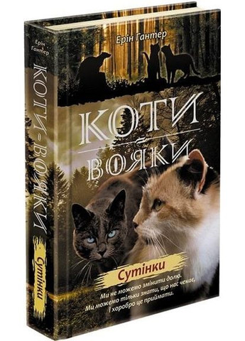 Про книгу: Друга книга серії світового бестселера «Коти-вояки». Продовження історії хатнього котика Рудька. Він залишив тепле і затишне життя домашньої кицюні. Тепер він — Вогнесерд, вояк Громового Клану диких котів. Полювання у лісових хащах, запеклі бійки з ворогами, ночівля під зоряним небом і повна свобода, яку ніхто не обмежує… Про що ще можна мріяти? Та чомусь Вогнесерд все частіше згадує своє минуле. Там були любов, тепло, ласка, а зараз навколо нього — холодна байдужість, нерозуміння і навіть неприхована ненависть. Чи стане він врешті своїм для Клану, за який ладен віддати власне життя? Чотири Клани котів. Чотири потужні стихії. Чотири армії вояків, що живуть за законами честі та братерства. Приєднуйся до них, пригоди починаються! Переклад з англійської — Катерина Дудка, Остап Українець. Оформлення — Олег Панченко. При перекладі тексту українською для опису загального устрою котячих кланів та громадянства їхніх членів була використана термінологія Національної скаутської організації України «Пласт». Автор: Серія «Коти-вояки» створена британськими письменницями Кейт Кері, Черіт Болдрі, Тай Сазерленд у співавторстві з редактором Вікторією Голмс під загальним псевдонімом Ерін Гантер. Розмір 125 на 200 мм