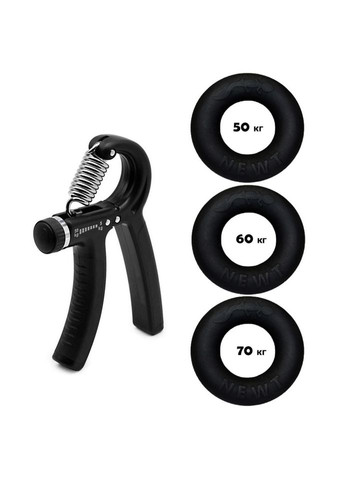 Набір кистьових еспандерів гумове кільце+еспандер ножиці Newt Power Grip Set2 NE-1588-60 – відмінний тренажер для розминки й тренування м’язів кистей і пальців, а також для відновлення після травм. Набір кистьових еспандерів складається з трьох еспандерів гумове кільце та еспандер кистьовий пружинний з регульованим навантаженням, які мають навантаження: 40, 50, 60 кг та від 5 до 60 кг і саме завдяки цьому є можливість поступово збільшувати навантаження на м’язи. Еспандери Newt Power Grip дуже зручні та компактні, мають ергономічний дизайн – стильні, завдяки антиковзкій поверхні й оптимальному розміру, дуже добре сидять в руці та приємні на дотик. У порівнянні з іншими кистьовими еспандерами серії Newt Power Grip, ці відмінно підходять як для новачків, так і для досвідчених спортсменів, еспандери мають рівень складності: середній. Середній опір – від 5 до 60 кг. Особливості: Рівень складності – середній. Компактні та зручні в застосуванні. Мають антиковзну поверхню. Стильні. Не мають різкого запаху. Виготовлені з високоякісної гуми хорошої зносостійкості. Можна використовувати, як антистрес. Характеристики: Розмір: еспандер кільце: зовнішній діаметр – 78 мм, внутрішній 38 мм., еспандер ножиці: довжина 15 см, ширина 10 см, товщина 1 см Матеріал: високоякісна гума хорошої зносостійкості, пластик, метал Колір чорний. Навантаження: резинових 40-60 кг., еспандер ножиці-5-60 кг Комплектація: 4 штуки.