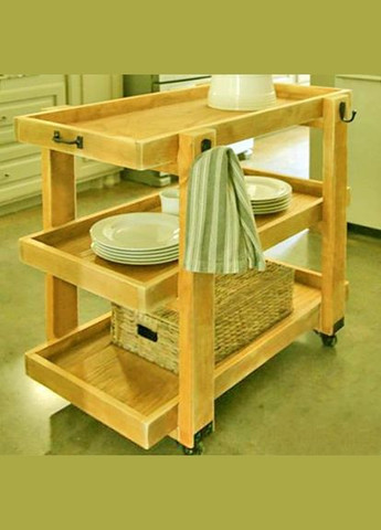 Мобільні етажерки і столики - чудова кухонна прислуга і додаткова пара рук, так необхідна кожній господині. Вони займають мінімум простору, при цьому надають максимальну місткість, розміщуючи на собі те, що зазвичай необхідно на кухні: рушники, кулінарні книги, посуд, побутову хімію, набір серветок і так далі.