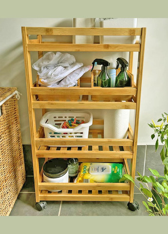 Дерев'яна пересувна етажерка на коліщатках для ванної - це стильне та практичне рішення для зберігання ваших речей. Компактна конструкція ідеально підходить для невеликих приміщень, а натуральний матеріал додає інтер'єру затишку та екологічності. Завдяки коліщаткам етажерку легко переміщувати, що забезпечує зручність використання у будь-якій зоні ванної кімнати. Полички дозволяють акуратно розмістити рушники, косметику, мийні засоби та інші предмети. Дерев'яна етажерка - це універсальне рішення, яке зробить вашу ванну кімнату більш функціональною та затишною.