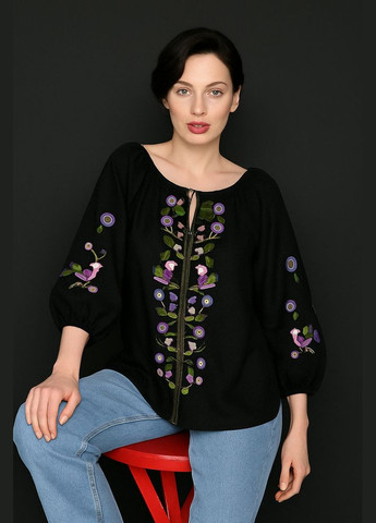 Модель виготовлена з натуральної тканини, має вільний прямий силует, глибокий виріз із зав’язками та яскраву машинну вишивку по центру і на рукавах. В орнаменті — птахи, квіти й символи в насичених відтінках бірюзового, фіолетового та коричневого. Об’ємні рукави зі зборами надають образу легкості та виразності. Ідеально підійде як для святкових подій, так і для стильного повсякденного образу. Особливості: Склад:70% льон, 30% віскоза — натуральні й дихаючі матеріали, які підходять для будь-якої пори року. Матеріал:льон — приємний на дотик, зносостійкий і добре пропускає повітря. Декор:актуальна вишивка-аплікація додає виробу вишуканості та унікальності. Крій:вільний, забезпечує свободу рухів і комфорт. Призначення:ця сорочка стане чудовим вибором як для щоденних справ, так і для створення витонченого образу на особливу подію