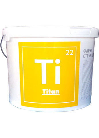 Фарба структурна Titan 14,8 кг біла фактурна призначена для створення декоративно-захисного покриття фасадів та інтер'єрів. Властивості структурної фарби Titan Структурна фарба для внутрішніх і зовнішніх робіт. Водно-дисперсійна акрилова. Утворює матове рельєфне покриття, стійке до атмосферних і механічних впливів. Має хорошу адгезію до основи. Легко наноситься на поверхню, приховуючи її дрібні дефекти. Має гарну водостійкість.. Є можливість створення структурних поверхонь різної товщини. Вид (рельєфність) візерунка і загальна товщина шару структурної фарби залежать від використовуваних інструментів, способів нанесення фарби, бажаної витрати фарби, кількості нанесених шарів фарби. Має гарну паропроникність. Легко наноситься на поверхню валиком, утворюючи при цьому візерунок типу «набризк-шубка». Стійка до мокрого стирання. Остаточну стійкість до стирання покриття набуває через 4 тижні. Поверхню можна фарбувати водно-дисперсійними фарбами. Для зовнішніх і внутрішніх робіт. Типи поверхонь для нанесення Для нових або раніше пофарбованих мінеральних основ: бетону, легкого бетону, міцної цементно-вапняної штукатурки, азбоцементу, цементно-волокнистих плит, силікатної цегли, систем теплоізоляції фасадів. Не використовувати в системах теплоізоляції фасадів на основі мінеральної вати, а також для горизонтальних поверхонь, що знаходяться під впливом води. Для фарбування при внутрішніх роботах мінеральних основ, гіпсокартону, ДВП, ДСП та ін.