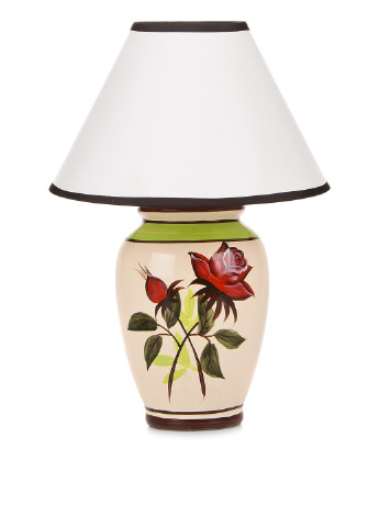 витончена і елегантна настільна лампа TL-66 від ТМ Вrille, ніжного бежевого кольору, декорована квітковим візерунком - підійде для любителів домашнього, класичного стилю. Лампа виготовлена з кераміки, у неї щільний, що нагадує за матеріалом міцний картон, абажур. Для цієї лампи потрібна одна лампочка з цоколем Е14. Варто звернути вашу увагу на те, як ця мініатюрна настільна лампа ненав'язливо, але в той же час красиво декорована візерунками. На склі художник зобразив нам прекрасний благородний квітка - троянду, ніж розбавив пастельні фарби яскравим червоним і зеленим кольором. Абажур менш декорований, по його контуру проходять коричневі смуги, але, в цілому, це зроблено для того, щоб лампа не здавалася надто «наляпісто» в плані малюнків. Ця модель підійде і для того, щоб помістити її в вітальні, і для спальні, на тумбі біля ліжка. Вона і практична у використанні, і буде мати гарний вигляд як елемент декору для вашого будинку