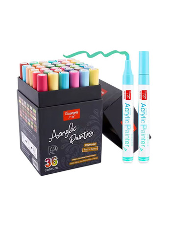 Професійні художні акрилові маркери в наборі 36 кольорів - ідеальний інструмент для безлічі творчих технік: скетчінг, ілюстрація, аніме, комікси, теггінг, скрапбукінг, манга та багато інших. Вони підходять як для художників-початківців, так і для професіоналів, прекрасно зарекомендувавши себе в різних напрямках рукоділля та хобі. Маркери забезпечують рівномірне нанесення фарби з насиченою пігментацією, що робить їх чудовим вибором для розпису скла, кераміки, металу, полотна, пластику, паперу, дерева та інших поверхонь. Високоякісні акрилові чорнила мають високу покривну здатність і відмінно пишуть навіть на складних фактурах. Підходять для роботи на папері різної щільності, картоні, кераміці, порцеляні, тканині, шкірі, а також для техніки боді-арт. Водна основа чорнил робить їх безпечними для використання - вони не токсичні, не мають неприємних запахів, гіпоалергенні та підходять навіть для дітей. Після висихання пігментні акрилові чорнила не втрачають кольору та стійкості під впливом сонячних променів і води. Використання цих маркерів принесе задоволення в будь-якому виді творчості! Характеристики: Тип: акрилові маркери Кількість кольорів: 36 Товщина лінії: 2-3 мм Застосування: графіті, розпис скла, кераміки, скетчінг, мистецькі та шкільні проєкти, розпис скла, кераміки