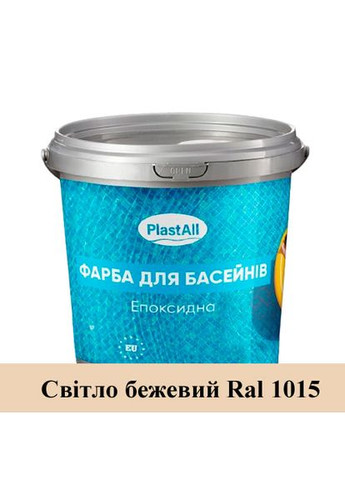 Епоксидна фарба для басейну Plastall 4,5 кг Світло бежевий Фарба для басейнів Plastall™ — це двокомпонентне епоксидне покриття з глянцевою структурою, розроблене для довготривалого захисту поверхонь, що постійно контактують з водою. Вона ідеально підходить для бетонних, металевих, керамічних і скловолоконних чаш басейнів, забезпечуючи виняткову стійкість до води, ультрафіолетового випромінювання, механічного стирання, хлорованих та кислотно-лужних розчинів. Це спеціалізоване лакофарбове покриття глибоко проникає в структуру поверхні, утворюючи герметичний і хімічно стійкий шар, що продовжує термін служби басейну та полегшує догляд за ним. Висока густота фарби перевищує густоту водоемульсійних аналогів, що забезпечує надійне зчеплення з основою й довготривалий результат. Переваги фарби Plastall™: Стійкість до агресивного середовища — витримує вплив хлору, солей, кислот і лугів. Глянцева поверхня — створює рівномірне покриття без розводів і дефектів. Механічна зносостійкість — стійка до ударів, стирання й навантажень. Термостійкість — зберігає експлуатаційні властивості при високих температурах. Комфорт у використанні — без запаху, що важливо для внутрішніх робіт. Функції: Захист внутрішньої чаші басейну від дії води та хімії. Гідроізоляційна та декоративна обробка поверхонь. Універсальне застосування як у приміщеннях, так і на відкритому повітрі. Покращення гігієнічності та легкість очищення басейну. Характеристики: Тип: Двокомпонентна епоксидна система (компонент A + B) Колір: Білий або синій (тонування доступне) Структура: Глянцева Об'єм: 3,75 л Вага: 4,5 кг Витрата: 250–350 г/м² Поверхні: Бетон, метал, кераміка, скловолокно Сумісність з інструментами: пензель, валик, розпилювач Час висихання: 24 години Повне затвердіння: до 72 годин Температура нанесення: +18…+35 °C Температура зберігання: +5…+35 °C Стійкість: до спиртів, кислот, лугів, хлорованих середовищ Рекомендації щодо застосування: Підготовка: Очистіть поверхню від пилу, жиру, бруду та залишків попередніх покриттів. Змішування: Компоненти фарби змішуються у співвідношенні 1:1. Добре перемішайте до однорідної маси. Нанесення: Наносьте фарбу валиком, пензлем або методом наливу. Уникайте потрапляння вологи під час фарбування. Висихання: Дайте покриттю висохнути 24 години. Повне затвердіння настає через 72 години. Міри безпеки: Працюйте в захисних рукавичках і окулярах. Уникайте потрапляння фарби на шкіру та в очі. Зберігайте у закритій тарі в сухому приміщенні при температурі від +5 до +35 °C. Plastall™ — це українська якість для професійного використання. Обирайте перевірене рішення для довговічного захисту басейнів.