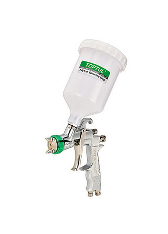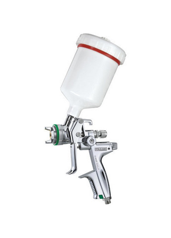 Відправка протягом 1-2 робочих днів. Краскопульт пневматичний тип HVLP верхній пластиковий бачок, діаметр форсунки-1,8мм AUARITAH-970P-1.8 Тип H.V.L.P - великий потік повітря та низький тиск на виході, підходить для нанесення найтонших шарів фарби та економить до 30% фарби. Особливості: спеціалізований професійний фарбопульти для фарбування автомобілів; використовується для фінішних фарбувальних робіт; екологічна система розпилення HVLP (великий потік повітря, низький тиск) застосовується для тонкого розпилення та досягнення оптимального співвідношення якість/ефективність; високе перенесення матеріалів на поверхню, що фарбується; краскопульт нового покоління преміум класу «Super Saver» - технологія, що дозволяє отримати найкращу якість поверхні; Характеристики: Тип: HVLP (великий потік повітря, низький тиск) Розташування бачка: верхнє Об'єм бачка: 600 мл Матеріал бачка: пластик Оптимальний робочий тиск: 3,5 бар (50 PSI) Ширина факела розпилення: 24 см Витрата повітря: 100-140 л/хв Діаметр форсунки: 1,8 мм Подача повітря: Різьбове з'єднання із зовнішнім різьбленням ¼ (в комплекті з'єднання «папа» ¼ і різьбове з'єднання із зовнішнім різьбленням ¼ з шарніром 360°) Змінні форсунки (опціонально): 1,3, 1,4, 1,8, 2,0 мм Гарантійний термін, міс: 6; Діаметр вхідного штуцера: 1/4"; Діаметр сопла, мм: 1.8; Робочий тиск, бар: 3.5; Витрата повітря, літр/хв: 140; Регулювання тиску повітря: Так; Регулювання подачі суміші, що розпилюється: Так; Регулювання ширини факела: Так; Стан: Новий;