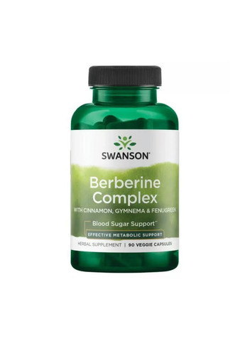 Berberine Complex with Cinnamon, Gymnema & Fenugreek 150 мг, Swanson, 90 капсул Комплекс на основі берберину HCl у поєднанні з корицею (Ceylon Cinnamon), листям Gymnema sylvestre та насінням Fenugreek. Підтримує нормальний рівень глюкози в крові, сприяє метаболізму вуглеводів та покращує чутливість до інсуліну. Переваги Регулює рівень цукру в крові Сприяє здоровому обміну вуглеводів Покращує інсулінову чутливість Антиоксидантна дія Склад (1 капсула) Інгредієнт Кількість % добової норми Берберин HCl (Berberis aristata root) 150 мг — Кориця цейлонська (Cinnamomum verum inner bark) 150 мг — Насіння пажитника (Fenugreek seed) 150 мг — Листя Gymnema sylvestre 150 мг — * Добова норма не встановлена. Інші інгредієнти Гіпромелоза (капсула), висівки рису, стеарат магнію, діоксид кремнію. Спосіб застосування Дорослим приймати по 1 капсулі 1–2 рази на день під час їжі або за рекомендацією фахівця. Упаковка 90 капсул у банці. Дієтична добавка. Не є лікарським засобом.