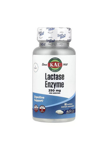 Інноваційна якість На ринку з 1932 року Дієтична добавка 2 капсули на день Капсули з рідким вмістом ActivGels Без сої Фермент лактази KAL призначений для людей з непереносимістю лактози. Він забезпечує харчову підтримку здорового травлення та розщеплення молочного цукру. Одиниці FCC (одиниці Кодексу харчових хімікатів) створені для визначення якості харчових речовин з точки зору ідентичності, ефективності та чистоти. Рекомендації із застосування Застосовувати тільки згідно з інструкцією. Приймати по дві капсули на день під час їди або запиваючи склянкою води. Інші інгредієнти Желатин, соняшникова олія, гліцерин, лецитин (соняшник), діоксид титану і сорбітол.