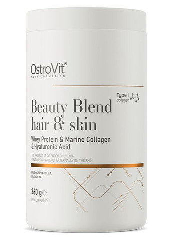 Beauty Blend for Shape OstroVit – це унікальний продукт, розроблений для підтримки фігури та покращення стану шкіри, волосся та нігтів. Формула включає високоякісний протеїн та DigeZyme® – мультиензимний комплекс для кращого засвоєння поживних речовин. Цей продукт ідеально підходить для людей, які прагнуть покращити свою фізичну форму та одночасно підтримувати красу зсередини. Протеїн – це головний будівельний елемент для м'язів, який допомагає відновленню та зростанню м'язових тканин, покращує метаболізм та підтримує рівень енергії. DigeZyme® – мультиензимний комплекс, що включає амілазу, протеазу, ліпазу, лактазу та целюлазу. Ці ферменти сприяють ефективному засвоєнню білків, жирів та вуглеводів, зменшують проблеми із травленням та покращують загальне самопочуття. Переваги: Підтримка фігури: високий вміст білка сприяє нарощуванню м'язової маси та прискорює процеси відновлення. Здоров'я шкіри, волосся та нігтів: протеїн підтримує структуру та здоров'я клітин, покращуючи стан шкіри та волосся. Легке засвоєння: DigeZyme® допомагає організму краще засвоювати всі необхідні поживні речовини. Поліпшення травлення: ферменти сприяють нормалізації роботи шлунково-кишкового тракту, запобігаючи дискомфорту після прийому їжі. Спосіб застосування Розчиніть 1 порцію 30 г (3 мірні ложки) в 200 мл молока або води. Вживайте одну порцію на день. Застереження: При вагітності, годуванні груддю, прийомі медичних препаратів чи наявності будь-яких захворювань слід проконсультуватися з лікарем перед вживанням харчових добавок. У разі виникнення побічних реакцій припиніть використання та проконсультуйтеся з лікарем. Зберігати у недоступному для дітей місці. Не використовувати, якщо зовнішня захисна мембрана відсутня чи пошкоджена. *** Виробник залишає за собою право змінити зовнішній вигляд упаковки, склад та/або консистенцію продукту. **** БАД не є лікарським засобом!