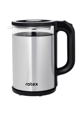 Електрочайник Rotex RKT94-S Prima Glass оснащений потужністю 1500 Вт і має об’єм 1,8 л, що робить його оптимальним для швидкого кип’ятіння невеликої кількості води. Корпус виконано зі скла з елементами нержавіючої сталі, а подвійні стінки додають енергоефективності та знижують нагрів зовнішньої поверхні. Чайник обладнаний прихованим (дисковим) нагрівальним елементом, що гарантує легке очищення та надійну експлуатацію. Забезпечена безпека під час роботи — автоматичне відключення при закипанні, захист від перегріву, а також вимкнення, якщо прилад працює без води, а також відключається при знятті з бази. У конструкції є водорівнева шкала, LED‑підсвітка, фільтр від накипу і поворотна 360° підставка для зручності використання.