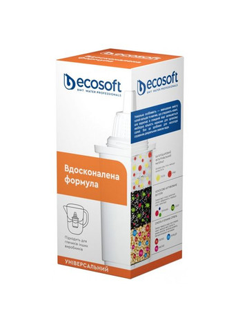 Картридж підходить до кувшинів Бар'єр, Аквафор, Єкософт Картридж підходить для більшості фільтрів-глечиків російських та європейських виробників. Оновлений універсальний картридж ECOSOFT для фільтрів-глечиків гарантує постійний доступ до чистої води джерельної якості в будь-який час, в будь-якому місці. Вдосконалена конструкція картриджа забезпечує стабільну швидкість фільтрування, а вдосконалена формула фільтрувальної суміші підвищує ефективність видалення органічних речовин та хлору на 40%*. Завдяки покращеній формулі фільтрувальної суміші та конструкції картриджа забезпечується: висока прозорість води, на 40% вища ефективність видалення органічних речовин та хлору, зниження утворення осаду в 4 рази, бактеріологічна стабільність очищеної води протягом 1 місяця. Завдяки оновленому картриджу ECOSOFT для фільтра-глечика, вода буде чистою, а значить страви будуть смачнішими чай та кава будуть ароматнішими побутові прилади (чайник, праска, пароварка, зволожувач повітря) будуть захищені від накипу * у порівнянні з попередньою моделлю універсальних картриджів Ecosoft для фільтрів-глечиків. ПРИЗНАЧЕННЯ Підходить для фільтрів Універсальний картридж ECOSOFT призначений для глечиків Бар'єр та Аквафор, тому встановлюється або вкручується в них ідеально. При використанні універсального картриджа для глечиків Ecosoft, у лійці завжди залишається невелика кількість невідфільтрованої води. Це не впливає на якість очищеної води. Але ми рекомендуємо для глечиків ECOSOFT Максима та НАША ВОДА Luna використовується ;покращений картридж ECOSOFT, конструкція якого розроблена спеціально під нашу лійку. Що всередині картриджа? У фільтрі застосована оновлена фільтрувальна суміш — розроблена спеціально для очищення водопровідної води в Україні. Вона очищає воду від: твердості — вода стає м'якою на смак, запобігає утворенню накипу хлору — покращується смак та запах води органічних домішок — покращується колір води піску, іржі — вода стає прозорою ВСТАНОВЛЕННЯ ТА ЗАМІНА Як часто міняти картриджі? Встановлення для різних фільтрів Для фільтрів стандартного типорозміру вставте картридж у лійку до упору, не використовуючи спеціальне кільце. Для фільтрів з лійкою більшого типорозміру зафіксуйте спеціальне кільце та вставте картридж у лійку до упору. Для фільтрів з різьбовим з'єднанням вкрутіть картридж у воронку знизу, не використовуючи спеціальне кільце. Покрокова інструкція 1. Видаліть старий картридж. 2. Ретельно промийте деталі фільтра. 3. Для нормальної роботи картриджа занурте його на 5–10 хвилин у воду, струшуючи картридж для видалення повітря. 4. Вставте новий змінний картридж у лійку до упору. 5. Обов'язково вилийте дві перші порції очищеної води. 6. Після цього фільтр готовий до використання. ВІДМІННОСТІ ПОКРАЩЕНИХ ТА УНІВЕРСАЛЬНИХ КАРТРИДЖІВ ECOSOFT Основні відмінності полягають в конструкції картриджів. В обох типах картриджів використовується унікальна фільтрувальна суміш, яка максимально ефективно видаляє найрозповсюдженіші забруднення води. Ніякого запаху хлору, білого накипу чи мутності води. Покращена конструкція картриджів, збільшений об'єм суміші та нова формула забезпечують на 40%* вищу ефективність видалення органічних речовин та хлору, в 4* рази менше відкладень, а також бактеріологічну стабільність очищеної води протягом 1 місяця. Покращ