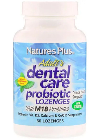 Льодяники з пробіотиками Adult's Dental Care - це нова приголомшлива добавка з живими пробіотичними клітинами M18 та L. acidophilus, а також вітаміном D3 та кальцієм для міцних зубів! Виробник: Nature's Plus, США Форма випуску: 60 льодяників Вік: 18+ Склад: Компонент Склад 2 льодяників Калорії 5 Усього вуглеводів 2 г Ксиліт 2 г Вітамін D3 (холекальциферол) 800 МО Кальцій (хелат, амінокислота/комплекс) 300 мг L. acidophilus (4 мільярди життєздатних клітин) 300 мг Коензим Q10 (убіхінон) 50 мг С. salivarius M18 (2 млрд життєздатних клітин) 20 мг Інші інгредієнти: дифосфат кальцію, стеаринова кислота, натуральний ароматизатор, стоматологічний трав'яний комплекс: шпинат, броколі, інжир, фінік, магнію стеарат, гуарова камедь. Не містить: штучних барвників та консервантів, алергенів: дріжджів, пшениці, сої та молока. Функціональна дія: Гігієна порожнини рота, Adult Dental Care Probiotic with M18, Natural Peppermint Flavor містить клінічно розроблений пробіотичний штам - S. salivarius BLIS M18, який не тільки допомагає боротися зі шкідливими мікроорганізмами в роті, але й позитивно вплине на загальне здоров'я клієнта. Штам пробіотика S. salivarius BLIS M18 – забезпечує здорове середовище порожнини рота за рахунок оптимізації рН, заспокоїть запалення та підтримає мікрофлору по всьому роті. Пробіотики із приємним смаком перцевої м'яти. Регулярне застосування пробіотика, із приємним смаком перцевої м'яти, допоможе значно покращити естетичний стан порожнини рота та зберегти свіжість дихання. Вітамін Д3 та кальцій допоможе зміцнити зуби та ясна, а коензим Q10 знизить чутливість до гарячого, холодного, солодкого та кислого. Застосування: Приймати 2 льодяники один раз на день. Повільно розчинити у роті. Протипоказання: Індивідуальна непереносимість компонентів. Попередження: При вагітності, годуванні груддю, прийомі будь-яких медичних препаратів або наявності будь-яких захворювань слід проконсультуватися з лікарем перед вживанням будь-яких харчових добавок. У разі виникнення будь-яких побічних реакцій припиніть використання та проконсультуйтеся з лікарем. Зберігати у недоступному для дітей місці. Не використовувати, якщо зовнішня захисна мембрана відсутня чи пошкоджена. *** Виробник залишає за собою право змінити зовнішній вигляд упаковки. Ми намагаємося стежити за змінами, але якщо ви помітили будь-яку невідповідність, будь ласка, повідомте нам про це в листі або в коментарі до товару. Спасибі! **** БАД не є ліками!