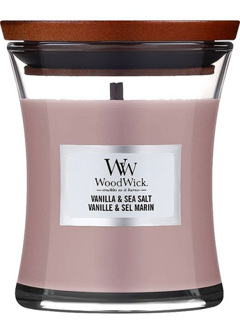 Дуже приємний і простий спосіб створити особливу атмосферу в приміщенні — запалити ароматичну свічку. Високоякісні свічки від американського бренда WoodWick складаються із соєвої воскової суміші та деревної кришки, завдяки чому виріб абсолютно безпечний для здоров'я. Довге танцююче полум'я свічки допоможе вам повністю розслабитися, насолодитися моментом спокою й умиротворення. Потріскуюче горіння свічки створить враження затишного, палаючого каміна. Ароматична свічка добре доповнить інтер'єр приміщення, ванної кімнати або вітальні. Незвичайний аромат, що поєднує солодку ваніль і морську сіль подарує відчуття релаксації і створить гарний настрій. Особливості ароматичної свічки в склянці від бренда WoodWick: - містить натуральні ефірні олії; - має стильну скляну упаковку; - рівномірне горіння; - має приємний аромат; - запатентований фітіль складається з органічного дерева.