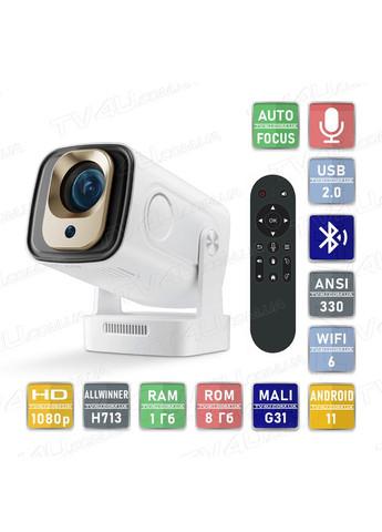 Призначення пристрою Перегляд фільмів та серіалів онлайн у високій якості Онлайн ТБ: IPTV, YouTV, SWEET.TV, Київстар ТБ, Megogo тощо Мультимедійний центр для дому: Youtube, Spotify тощо Ігри з підтримкою геймпадів на великому екрані Перегляд файлів із зовнішніх накопичувачів Проекція з PC, мобільних пристроїв, смартфонів і планшетів через Wi-Fi (Miracast, AirPlay) або через HDMI-вхід Використовувати для показу презентацій, документів, проектів, таблиць тощо під час ділових зустрічей або навчання Навчання та дистанційна освіта – проектор дає змогу транслювати навчальні матеріали, онлайн-курси, Zoom-конференції тощо. Операційна система та додатки Magcubic HY310 1/8 Гб працює на ОС Android 11 - це звичайна версія операційної системи, яка розроблена для планшетів та смартфонів. На пристрої спочатку встановлена версія Google Play Маркет така сама як на планшетах і смартфонах. На жаль, не всі програми для мобільних пристроїв коректно працюють з медіапристроями, але ви без проблем зможете встановити версію програми для систем Android TV вручну з APK-файлу або за допомогою альтернативних маркетів. Загальні характеристики Смарт проектор Magcubic HY310 працює на процесорі Allwinner H713, який має 4 ядра ARM Cortex-A53, та оснащений графічним прискорювачем ARM Mali-G31 MP2. Має 1 Гб оперативної пам’яті та 8 Гб внутрішньої пам’яті. Рідна роздільна здатність пристрою 1080P Full HD (1920x1080), але також проектор дозволяє декодувати відео аж до 4К. Завдяки LCD-матриці та LED-підсвітці з яскравістю до 330 ANSI, колірною температурою 8000 К (±10%) та контрастом 2000:1 , на екран передається чітке барвисте зображення з можливістю відображення картинки з діагоналлю від 40 до 130 дюймів. Пристрій має проекційне співвідношення 0,8:1, та може використовуватися на відстані від 0.6 до 2.5 м (рекомендована оптимальна відстань 1,2 м). При необхідності розмір та колір зображення можна коригувати за допомогою автоматичних та ручних налаштувань. За словами виробника проектор Magcubic HY310 видає шум на рівні ≈ 26 дБ. Варіанти установки Проектор необхідно помістити на стіл або іншу стійку поверхню на відстані, яка підходить для отримання потрібного розміру зображення на екрані. Пристрій має вбудований зручний 180 ° механізм, що дозволяє налаштувати проектор на будь-який кут та поверхню, забезпечуючи максимальну гнучкість використання. Поворотна ніжка проектора – дуже практичне рішення, яке дозволяє легко змінювати кут проекції. Можна спрямовувати зображення на стіну або навіть на стелю, і проектор сам налаштує пропорції зображення. Корпус пристрою оснащений отвором з універсальним різьбленням діаметром 1/4 дюйма, що дозволяє встановити його на настільну підставку, настільний або підлоговий штатив, а також закріпити за допомогою настінного кронштейна. Така сумісність робить пристрій максимально зручним та адаптивним, забезпечуючи комфортне використання у будь-яких умовах – від домашнього кінотеатру до презентацій чи заходів. Особливості Автоматична корекція трапеції – проектор сам вирівняє зображення, навіть якщо стоїть під кутом. Ніяких перекошених кадрів — тільки ідеальна картинка. Автоматичне електронне фокусування лінзи - завдяки вбудованій функції автофокусу проектор автоматично визначає оптимальну відстань до поверхні та миттєво налаштовує різкість зображення. Зображення завжди залишається чітким навіть після переміщення або зміни кута проекції. Крім то