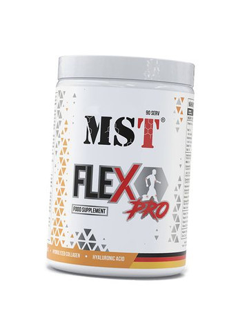 Комплекс для суглобів підвищеної дії FleX Pro MST апельсин 1350 г FleX Pro MST — це інтенсивна формула для підтримки здоров’я суглобів, зв’язок і сполучної тканини. Містить гідролізований колаген, вітаміни, мінерали, глюкозамін, хондроїтин, MSM та екстракти рослин — усе необхідне для активного способу життя і відновлення після навантажень. Основні характеристики Форма випуску: порошок Порція: 15 г (1 мірна ложка) Кількість порцій: 90 (в одній упаковці 1350 г) Без ароматизаторів, барвників і ГМО Смак: без смаку Склад (на порцію — 15 г) Назва речовини Кількість Призначення Вітамін A 400 мкг RE Підтримка шкіри, зору, імунітету Вітамін D 5 мкг Обмін кальцію, кісткова система Вітамін E 34 мг α-TE Антиоксидант, захист клітин Вітамін C 500 мг Синтез колагену, імунітет Кальцій 800 мг Кістки, м’язи, серце Цинк 13 мг Регенерація тканин, імунітет Селен 100 мкг Антиоксидант, щитоподібна залоза Колагенові пептиди Solugel® 5 г Підтримка суглобів і зв’язок MSM (метилсульфонілметан) 1000 мг Зменшення запалення, підтримка рухливості Глюкозамін сульфат 995 мг Суглобовий захист Хондроїтин сульфат 600 мг Підтримка хрящової тканини Екстракт босвелії 118 мг Протизапальна дія Гіалуронат натрію 53 мг Змащення суглобів Куркумін 47,5 мг Антиоксидант, протизапальна дія Бромелайн 375 мг (1200 GDU/g) Протизапальна дія, травлення AstraGin™ (екстракт женьшеню й астрагалу) 25 мг Покращення засвоєння Екстракт чорного перцю (піперин) 2,4 мг Підвищення біодоступності Інші інгредієнти Інулін Тетранатрій трикальцій цитрат Антизлежувальні агенти (діоксид кремнію) Желатин, ароматизатори (відсутні) Переваги продукту Повний спектр компонентів для здоров’я суглобів Містить гідролізований колаген, хондроїтин, MSM, вітаміни та рослинні екстракти Формула з високою біодоступністю (з AstraGin™ і піперином) Збалансований комплекс на кожну порцію Відсутність ароматизаторів і барвників Як застосовувати Змішати одну порцію (1 мірна ложка — 15 г) із 300 мл води. Приймати щодня після сніданку. Протипоказання та застереження Індивідуальна чутливість до компонентів Не рекомендується вагітним і жінкам у період лактації Не перевищувати добову порцію Про бренд MST (Muscle Science Technology) — німецький бренд, що спеціалізується на спортивному харчуванні й функціональних формулах для здоров’я. Вся продукція виготовляється з високоякісної сировини відповідно до європейських стандартів якості. Чому варто обрати саме цей продукт? FleX Pro MST — це потужний комплекс для всебічної підтримки суглобів. Завдяки поєднанню колагену, вітамінів, хондропротекторів і рослинних екстрактів, він ідеально підходить для спортсменів, людей із підвищеним навантаженням або віковими змінами у суглобах. Замовляйте зараз і підтримайте здоров’я природним шляхом!