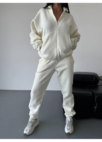 Жіночий костюм із флісу — теплий та комфортний варіант для прохолодного сезону, який поєднує практичність і стиль. Комплект складається з кофти на блискавці з довгим рукавом та капюшоном і брюк-джогерів на високій посадці. Кофта має зручну застібку-блискавку, що дозволяє легко регулювати посадку й носити виріб як верхній шар. Довгий рукав і капюшон забезпечують додатковий захист від холоду та вітру, створюючи відчуття затишку. Штани-джогери на високій посадці з еластичною резинкою дарують свободу рухів та комфорт упродовж усього дня. Завдяки продуманому крою вони гарно сідають по фігурі та зберігають актуальний вигляд. Однотонне виконання підкреслює лаконічність і сучасність костюму, роблячи його універсальним для поєднання з будь-яким взуттям — від кросівок до масивних черевиків. Флісова тканина приємна на дотик, чудово утримує тепло й водночас залишається легкою та практичною. Це ідеальний вибір для прогулянок, подорожей чи щоденного використання, коли важливі комфорт та стиль.