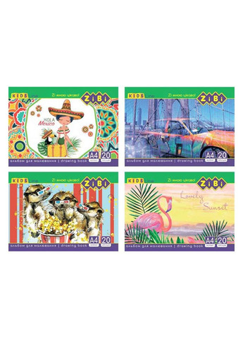 Альбом для малювання А4 20 арк. на скобі арт.ZB.1423 ТМ ZIBI Малювання - це важливий спосіб пізнання світу і формування особистості, тому створення малюнків - це просто необхідний елемент дитячого дозвілля. Альбом для малювання має сучасний дизайн, яскраву обкладинку та білосніжний папір. Призначений для малювання олівцями, фломастерами і гуашевими фарбами. Для виробництва альбомів використовуються найсучасніші поліграфічні технології. У такому альбомі малювати одне задоволення. Характеристики: Кількість аркушів: 20 Щільність паперу: 100/м2 Тип кріплення: на скобі Формат: А4 Обкладинка: повнокольорова картонна - 230г / м2, В асортименті 4 дизайни (без можливості вибору) Країна-виробник - Україна