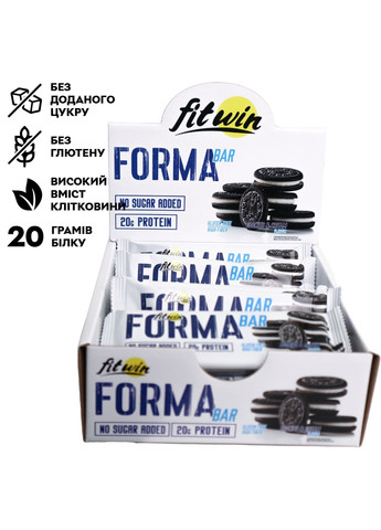 У коробці по 2 штуки кожного смаку: Полуничний йогурт, Кокос, Малиновий Чізкейк, Печиво-крем, Шоколад. За бажанням кількість батончиків одного смаку можна змінювати під час підтвердження замовлення за наявності на складі потрібних Вам смаків. FitWin Forma Bar неглазурований протеїновий батончик, призначений для задоволення голоду без зайвих калорій. Цей продукт ідеально підходить для спортсменів та всіх ведучих активний спосіб життя, прагнучи підтримувати форму та здоров `я. Особливості протеїнового батончика "FormaBar": Високий вміст білка: 20 г на батончик, що сприяє нарощуванню та відновленню м `язів. Без цукру та глютена: ідеальний вибір для людей, які обмежують ці інгредієнти у своєму раціоні. Додавання водорозчинних волокон кукурудзи, що виступають пребіотиком, покращуючи травлення та сприяючи здоров `ю кишечника. Низькокалорійний та низьковуглеводний склад, що робить його відмінним варіантом для підтримки форми без втрати енергії. Протеїновий батончик "FormaBar" не тільки забезпечує організм необхідними поживними речовинами та енергією для активного життя, але й приносить задоволення від кожного шматка завдяки своєму ніжному смаку. Виріб не містить ГМО, що гарантує безпеку та природність інгредієнтів. Переваги протеїнового батончика "FormaBar": Підтримка м `язової маси та відновлення завдяки високому вмісту білка. Сприяння здоровому травленню та кишечнику через додавання пребіотичних волокон. Зручність та мобільність: ідеальний перекус на ходу, що не вимагає підготовки та зберігання. Застосування "FormaBar" рекомендується перед тренуванням для заряду енергією, так і після нього для швидкого відновлення. Також цей батончик може бути чудовим вибором для здорового перекушування протягом дня, допомагаючи утримувати відчуття ситості та надавати необхідну енергію без зайвих калорій. Як приймати: Для безпосереднього вживання в якості продукту з високим вмістом молочних білків і харчових волокон, що легко засвоюються, не більше 2х батончиків на день. Вміст елементів у 1й порції 60 грам Калорії 178 ккал Жири 4.9 г - насичені 4 г Вуглеводи 3.5 г - цукор 0.8 г Харчові волокна 20.4 г Білок 20 г Сіль 0.1 г Інгредієнти Суміш білків 42% (концентрат сироваткового білка [молоко], концентрат молочного білка), водорозчинні волокна кукурудзи, жир кокосовий, вологомісткі агенти (гліцерин, мальтитол), натуральний ароматизатор, ароматизатор, антиоксидант - вітамін E (емульгатор - моно- , натуральний харчовий барвник – кармін, регулятор кислотності – лимонна кислота, натуральний підсолоджувач – стевіол глікозиди зі стевії Склад може відрізнятися залежно від смаку. Може містити сліди горіхів, сої, яєць. Виробник: FitWin; Форма випуску: Батончик; Вага: 600; Кількість порцій, шт: 10; Зміст порції: 1 батончик (60 грам); Зміст білка: 33; Вміст вуглеводів: 5; Зміст жирів: 7; Тип батончиків: Протеїнові; Дієтичні потреби: Без цукру, Не містить ГМО; Пол: Жіночий, Чоловічий; Вікова категорія: Дорослі; Країна виробника: Україна