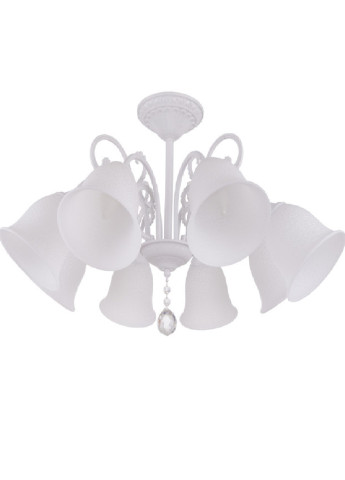 Люстра LK-686S / 8 E27 WH може висвітлити зал ресторану або кафе, вітальню житлового будинку, фойє готелю. Вона виконана в білому кольорі, має класичну форму. Від металевої основи відходять вісім вигнутих власників для плафонів, внизу є декоративна скляна підвіска. Поверхня корпусу штучно состарена, що надає світильнику шарм і вінтажний шик. Плафони зроблені з білого матового скла, формою нагадують бутони кольорів. Світловий потік буде м'яко розсіюватися по простору, не втрачаючи свою інтенсивність. Конструкцією передбачено використання восьми лампочок з цоколем Е27 і максимальною потужністю 60 Вт. Це можуть бути світлодіодні, енергозберігаючі або звичайні лампи розжарювання. Така люстра відмінно впишеться в інтер'єри вантажу, прованс і їх сучасні інтерпретації.