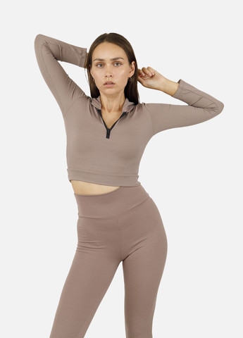 Костюм виготовлений з принтованого софту в поєднанні з американським крепом з фактурою легкої жатки. Тканини мають мінімальну розтяжність, враховуйте це під час підбору розміру. Завдяки своєму асиметричного фасону гарно сідає по фігурі. Футболка з короткими суцільнокроєними рукавами. Також вона має вертикальний плечовий шов, що створює вільний силует. Футболка з V-подібним вирізом коміра, який створюється завдяки капюшону. Штани вільного фасону з високою посадкою без манжетів, талія на гумці без застібок. По боках присутні дві кишені з відрізним бочком.