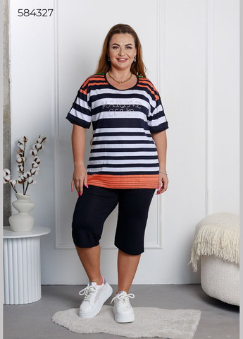 Комплект жіночий капрі та футболка ВИРОБНИК: Christina, Туреччина. ЯКІСТЬ: 95% бавовна, 5% лайкра. РОЗМІР: 2XL, 3XL, 4XL КОЛІР: помаранчевий