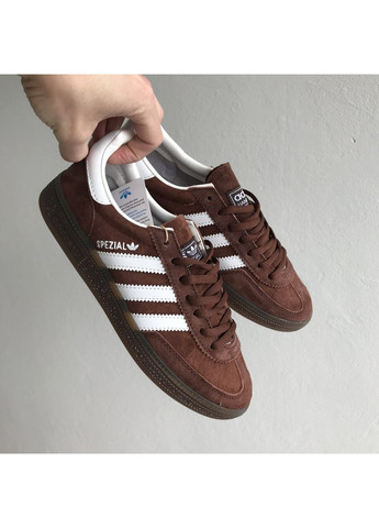 Верх із натурального замшу забезпечує м’якість і зносостійкість, тоді як гумова підошва з характерним протектором гарантує надійне зчеплення. Контрастні три смуги та логотип Spezial додають впізнаваного ретро-шарму.