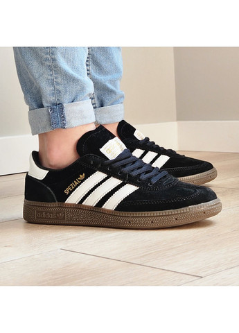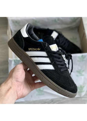 Верх із натурального замшу забезпечує м’якість і зносостійкість, тоді як гумова підошва з характерним протектором гарантує надійне зчеплення. Контрастні три смуги та логотип Spezial додають впізнаваного ретро-шарму.