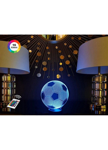 Відправка протягом 1-2 робочих днів.3D нічник "Футбольний м'яч з короною" (ЗБІЛЬШЕНЕ ЗОБРАЖЕННЯ) подарункова упаковка + 16 кольорів + пульт ДК + мережевий адаптер + батарейки (3ААА) 3DTOYSLAMP 3D-світильники-нічникиторгової марки 3DTOYSLAMP з ефектом тривимірного зображення стануть відмінним доповненням будь-якого інтер'єру. Просте управління. Колір світіння змінюється натисненням на кнопку на корпусі, а також за допомогою пульта дистанційного керування. Є режим автоматичного перемикання кольорів та можливість регулювати яскравість підсвічування нічника. Безпека. Світильник не нагрівається, не має запаху. Робота від батарей і від мережі. 3D світильник "Футбольний м'яч з короною" може працювати від мережі, комп'ютера або power-банку, а так само від батарейок (мікропальчикові 3 шт) ЙДУТЬ У КОМПЛЕКТІ. Управління за допомогою пульта:\r\n Направте пульт у бік бази. Натисніть ON — щоб увімкнути, OFF — для вимкнення лампи. Яскравість світіння регулюється за допомогою кнопок зі стрілками вгору/вниз. Для вибору кольору світіння натисніть кнопку відповідного кольору. FLASH — зміна кольору по порядку. STROBE — зміна кольору у випадковому порядку. FADE — кольори змінюються з ефектом загасання. SMOOTH — плавна зміна кольору. Вам понравилось кілька дизайнів 3D каганців і не знаєте який вибрати? Можливо, вашій дитині понравився інший мультяшний герой чи Ви змінили інтер'єр у вашому поміщенні? Не обов'язково купувати новий каганець! ; Унікальною особливістю 3D ламп є те, що зображення в ньому знімні. У нашому магазині представлений великий асортимент змінних пластин. Досить замовити у нас додаткове зображення – і у Вас новий 3D каганець! Характеристики: Колір світла: 16 кольорів світіння; Матеріал: акрил, пластик; Розмір: 22х13 см; Можливість: 5 Вт; Комплектація: подарункова упаковка, корпус, плоска пластина (ЗБІЛЬШЕНА ЗОБРАЖЕННЯ), пульт ДК, USB - кабель 1.5 м, мережевий адаптер,батарейки (3ААА), інструкція на рос. мові; Гарантія: 12 місяців; Ресурс лампи: до 50 000 годин роботи МАТЕРІАЛІ НЕ МІСЦЯТИ ВРОЧКИ! НЕ НАГРІВАЄТЬСЯ! БЕЗПЕЧНО ДЛЯ ДІТЕЙ! Вся продукція торгової марки 3DTOYSLAMP пройшла ретельну перевірку на якість! Тип кріплення: На поверхню; Стан: Новий; Комплектація: корпус, акрилова пластина, шнур USB -1.5 м, мережевий адаптер, інструкція російською мовою; Тип: 3D-світильник; Споживання, Вт/год: 0.5; Гарантія: 6 місяців; Тип джерела світла: світлодіодні (LED); Потужність, Вт.: 5; Додаткові характеристики: 7 кольорів світіння (теплий білий, зелений, синій, червоний, фіолетовий, блакитний, жовтий); Вимикач: сенсорний, на корпусі; Матеріал корпусу: пластик; Живлення: Від мережі, комп'ютера, Power Bank, прикурювача в автомобілі, 3хААА (3 мікропальчикові батареї); Країна виробник товару: Китай; Розмір: 220х130х87 мм;