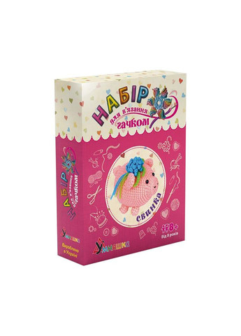 Рекомендований для дітей старше восьми років, універсальний набір для творчості. В'язання гачком "Свинка" (ВК-012) BK-012 особливо припаде до душі дівчаткам, які проявляють інтерес до рукоділля. Подібне проведення часу відмінно розвиває дрібну і велику моторику, позитивно впливає на психоемоційний стан, допомагає зняти стрес і забути про негативні переживання. В'язати барвистою ниткою доставить Вашій дитині море задоволення. Творчий дитячий набір для в'язання гачком - це гра, з якої Ваша дитина вчиться основним прийомам в'язання, отримує нові важливі навички, поліпшує навички запам'ятовування і стає більш посидючим. У комплектації передбачена кольорова пряжа 100%, дитячий гіпоалергенний акрил, гачок, а також очки-намистинки для декорування в упаковці 17 х 5 х 22 см. Всі інструменти і матеріали виготовлені з нетоксичних, гіпоалергенних матеріалів, які є абсолютно безпечними для дитячого здоров'я. Займаючись копіткою, захоплюючою справою, Ваша донечка буде розвивати не тільки дрібну моторику, а й уяву, колірне і естетичне сприйняття.