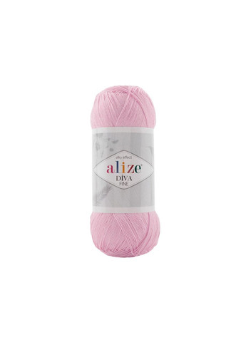100% мікрофібра акрил, 100г - 600м Alize Diva Fine Forever - класична пряжа, міцна та м'яка. Відмінне скручування нитки, має гарний блиск і дуже шовковиста на дотик. Нитка рівна, ніде не кудлатить, а полотно виходить рівне і акуратне. Це стовідсоткова мікрофібра, але дуже гарної якості. Пряжа призначена для в'язання літніх і весняних речей, а також для в'язання серветок, скатертин і чудово підійде для спиць і гачка. Велика різноманітність кольорів та відтінків від спокійних до яскравих дозволяє підібрати пряжу для в'язання виробів на будь-який смак. Речі з Alize Diva Fine виходять дуже красивими і при цьому комфортними в носінні. Для створення ошатних речей чудово комбінується з ідентичною пряжею з люрексом Після прання виріб відмінно тримає форму, не вигоряє на сонці і відмінно прасується. Нитка профарбована добре і абсолютно не линяє.