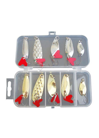Набір металевих блешень для риболовлі, 10 шт (2.5 г / 7 г), срібло та золотоПрактичний набір з 10 риболовних блешень у класичних кольорах — золотистому та сріблястому. Приманки виготовлені з металу, мають різну вагу (2.5 г та 7 г) і забезпечують стабільну гру у воді, приваблюючи хижу рибу в різних умовах лову.Гострі гачки гарантують надійне підсікання, а компактні розміри дозволяють виконувати точні закидання. Блешні підходять як для прісної, так і для солоної води — чудове рішення для універсальної риболовлі на щуку, окуня, судака та інших хижаків.У комплекті:10 металевих блешеньВага: 2.5 г і 7 гКолір: золото та сріблоОснащення: гострі гачки