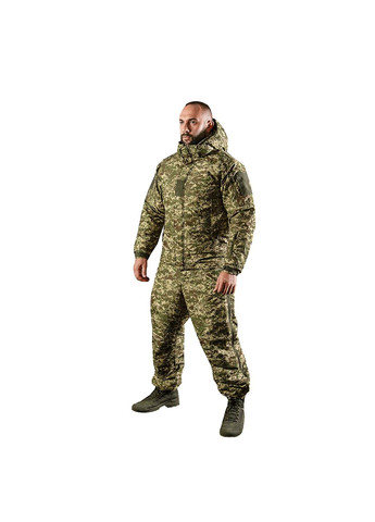 Кольори в наявності: Мультикам і Хижак Тактичний комплект зимового одягу (куртка та штани) Defender 7 lvl з мембранної тканини, із захистом від вологи та вітру.Комплект позиціонується як 7LVL одягу в американській пошаровій системі ECWCS, тобто останнім зовнішнім ізоляційним шаром для використання у екстремально холодну погоду. А за нашою системою пошарового одягу є 3 захисним шаром. Комплект виготовлений з високоякісної тканини ClimaGuard, що є унікальним поліамідним волокном з репсовим плетенням ниток, яке є синонімом міцності та зносостійкості. Внутрішня мембрана забезпечує надійний захист від вітру та вологи, допомагаючи зберегти тепло навіть у несприятливих погодних умовах. Якісний утеплювач T-Loft. Це інноваційний український утеплювач, розроблений під час війни з Росією. Ефективну терморегуляцію забезпечують внутрішні камери, що захоплюють тепле повітря. Матеріал легкий, є аналогом натуральному пуху. Завдяки своїй структурі, TEMPLOFT не лізе через тканину, не намокає, а також має високу пружність. Куртка Defender 7 level Куртка має анатомічний дизайн та рукави реглан, що забезпечує свободу рухів та комфорт. Подовжений крій додає захисту від холоду, а спеціальні виточки у ліктях підвищують зручність у використанні. Куртка оснащена утепленим капюшоном, що знімається, з горищем, який легко регулюється за всіма параметрами, що дозволяє налаштувати його для будь-яких погодних умов. Манжети регулюються липучками, а низ куртки оснащений утяжками із пластиковими фіксаторами для додаткової герметичності. Центральна блискавка прикрита планкою на липучках, що захищає від продування та проникнення вологи. Куртка оснащена безліччю кишень для зберігання необхідних речей: дві класичні кишені спереду, по одній кишені на рукавах під липучками, дві нагрудні кишені і три внутрішні кишені. Додаткова невелика кишеня на рукаві у манжету підходить для дрібниць. На рукавах та грудях розташовані липучки для кріплення патчів та шевронів.