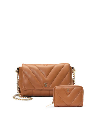 Стильна сумка з гаманцем Victoria Secret. Шикарний комплект із сумочки та гаманця. Цю шикарну стьобану сумку можна носити трьома способами: через плече, на плечі або в руці, що забезпечує універсальний стиль, який підійде до будь-якого вбрання. Сумка з одним відділенням, яке застібається на магніти. Всередині одна кишеня на блискавці. Довга регульована ручка ланцюжок. Спереду металевий логотип бренду. Розмір: 26*16*10 см. Стильний гаманець легко поміститися в будь-яку сумку. Елегантний гаманець із закругленою блискавкою та безліччю внутрішніх кишень допоможе вам завжди бути гаразд. Смугасте оздоблення з гладкої та м'якої гальки, прикрашеної фірмовою фурнітурою V-Monogram. Два основні відділення та 4 слоти для карт. Розмір: 12*8*2 см.