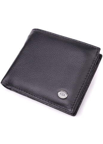 Матеріал: натуральна шкіра; Колір: чорний; Розміри (ШхВхГ)см: 11,7х9,5х2 см; Країна виробництва: Китай. Особливості: - 1 основне відділення для купюр; - 1 відділення на блискавці на всю довжину; - 6 слотів для кредиток; - 4 приховані кишені; - 1 кишеня під плівкою; - 1 зовнішня кишеня для монет на блискавці; - Закривається клапаном на магніти. Місткий гаманець середнього розміру з натуральної шкіри найвищої якості. Аксесуар складається з одного місткого відділення для купюр, кишені на блискавці через всю довжину, шести осередків для карт, чотирьох прихованих кишень, кишенька під плівкою та зовнішньої кишені на блискавці, що чудово прослужить для монет. Зовні виріб прошитий рівним рядком по краю і прикрашений тисненим логотипом компанії виробника, який розміщений на клапані посередині. Портмоне доповнено надійною фурнітурою та міцною підкладкою. Укомплектований гаманець у фірм