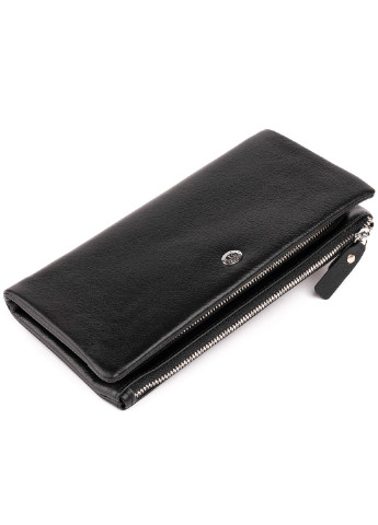 Матеріал: натуральна шкіра; Колір чорний; Розміри (ШхВхГ): 11х9, 5х2, 5; Країна виробництва: Китай. Особливості 2 відділення для банкнот (одна на блискавці); 2 річниця для кредитних карток; 4 прилеглі кармани; 1 відділення на блискавці. Гаманець має надійну фіксацію кнопкою. Внутрішнє оздоблення виконане із двома відділеннями для грошей, одне з яких закривається молниею, а інше має відкритий тип. Виріб оснащений осередками для банківських карток, що закриваються карманом для зберігання монет та інших невеликих предметів. На лицьовій стороні зображено брендовий знак і лаконічний крайовий рядок. Виготовлено аксесуар із натуральної свинячої шкіри в комбінації з текстильною підкладкою. Матеріали, з яких виготовлено виріб, міцні, зносостійкі Виробник: ST Leather; Доставка: Відправлення протягом 1-2 робочих днів; Виробник: ST Leather; Тип застібки: Кнопка; Розміри, див: 11х9, 5х2, 5; Країна виробник: Китай; Країна походження: Україна; Категорія: Для чоловіків; Матеріал: натуральна шкіра; Горизонтальний; Торгова марка: ST Leather; Колір чорний; Розмір виробу: 11х9,5х2,5 см; Стать: Чоловіча; Розмір: Маленькі