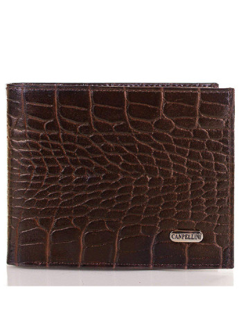 Кількість основних відділень (для купюр): 2. Відділення для фотокарток, пропусків, проїзних квитків та інших документів: 3. Відділення для візиток, банківських і дисконтних карт: 6. Відділення для дрібниці: 1. Карман-монетниця закривається за допомогою клапана і механічної кнопки. Матеріал вироби: полірована шкіра під крокодила. Колір: дуже темний коричневий (ближче до чорного). Колір фурнітури: срібло. Розміри (X * Y * Z): 12,5 * 9,7 * 2 см. У розкритому вигляді ширина виробу становить 24,5 см. Аксесуар виплнен без застібки. Виріб упаковано в фірмову коробку з щільного картону. Країна походження торгової марки Canpellini - Туреччина.
