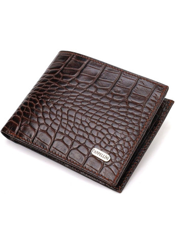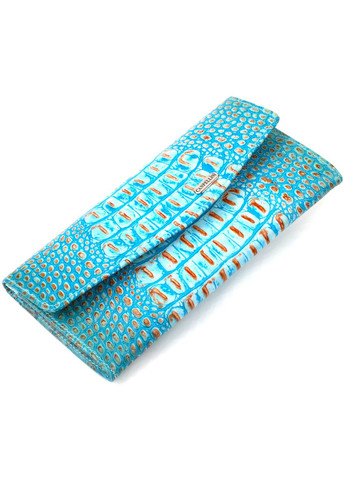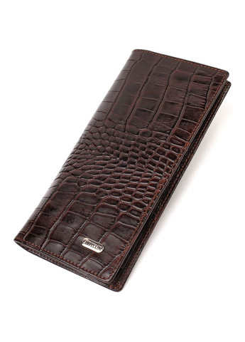 Практичний портмоне для стильних і впевнених у собі людей, виріб з натуральної шкіри з тисненням під крокодила. Аксесуар має одне основне відділення з тканинною перегородкою на блискавці, вісімнадцять кишень для карток, кишеню під сіточкою для пропуску, дві приховані кишені та монетницю. Закривається аксесуар у дві додавання хлястиком на кнопку. На лицьовій стороні, у правому нижньому кутку металевий логотип компанії виробника. Купуючи шкіряний аксесуар цієї фірми, собі або на подарунок, будьте певні, що він прослужить Вам не один рік.